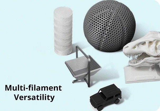 En las granjas de impresión 3D de nivel profesional, la diversidad de materiales es crucial. La capacidad de la S1 de alcanzar una temperatura de boquilla de 350 ℃, una temperatura de lecho caliente de 120 ℃ y una temperatura de cámara de 50 ℃ le permite manejar una amplia gama de filamentos, incluidos PLA, PETG, TPU, ABS, ASA, PVA, PET, PA, PC, PLA-CF, etc. Esta versatilidad brinda acceso a amplias opciones de materiales para diversas aplicaciones, lo que otorga a los creadores la flexibilidad de elegir el material adecuado según los requisitos específicos de cada proyecto.