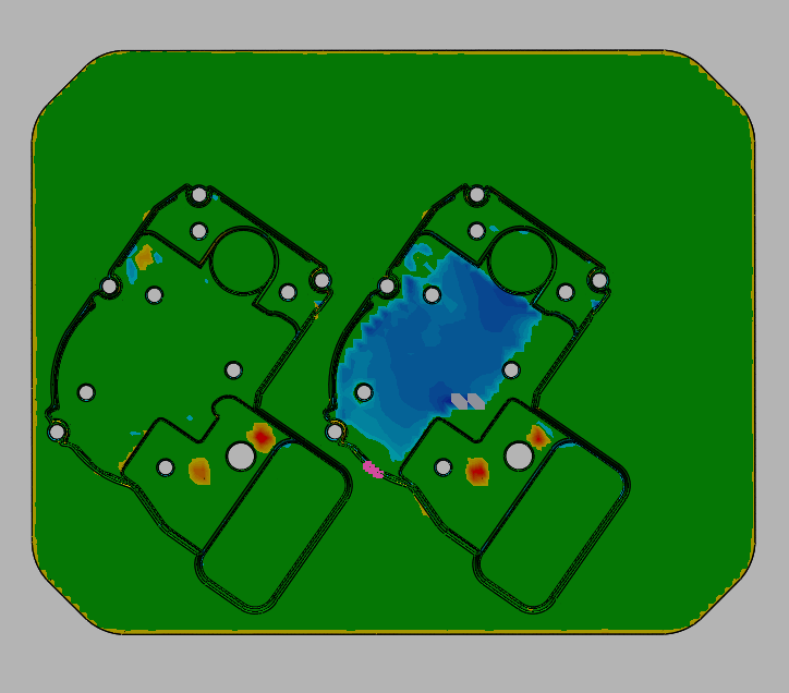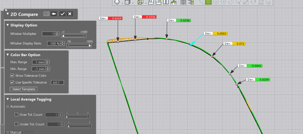 Su algoritmo te permite analisar la deformacion total en base a tu Tolerancia para Ver en una prueba de Color Si existe Excedente o Faltante de Material ya sea por Fabricacion o Desgaste.