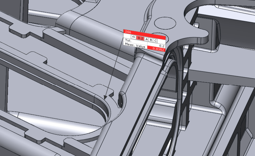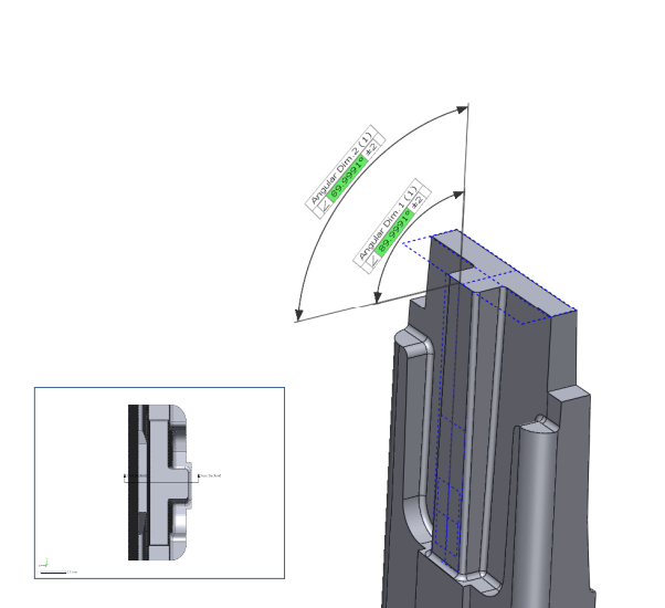La opcion de Realizar cortes sobre el modelo CAD hace que analizar una pequeña area indicada en el Plano facilite la forma visual de la medicion.